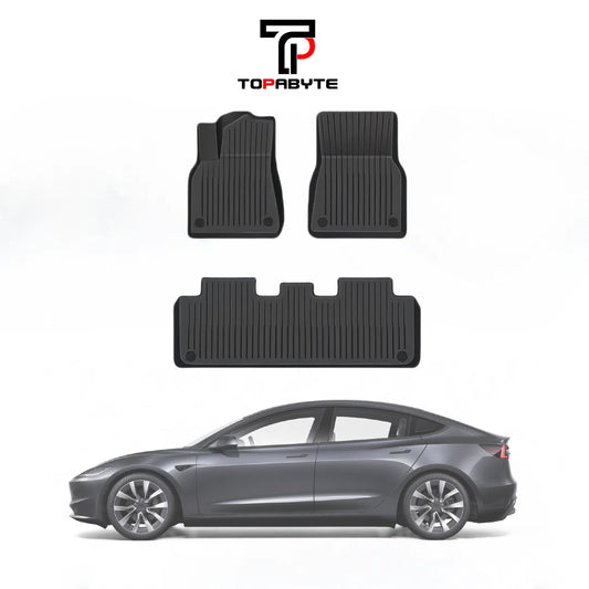 TOPABYTE TPE Floor Mats with Double Layer Carpet for Model 3 Highland 2024 2025 All-Weather Protection (6PCs)