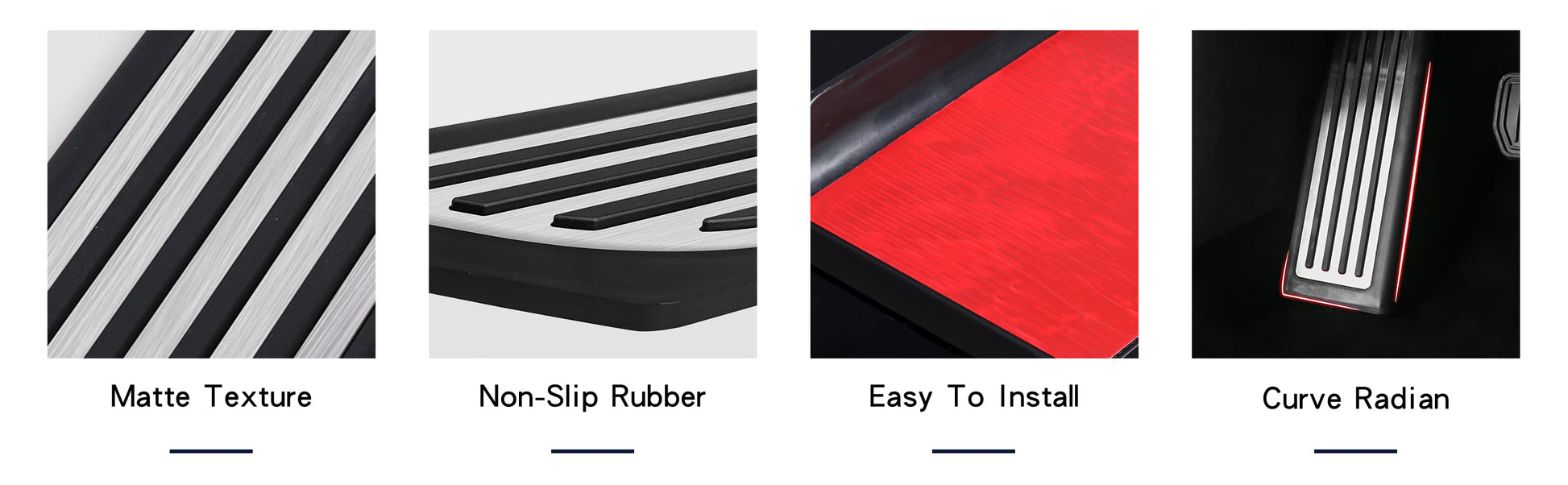 - Diseño personalizado: Diseñados para pedales de freno y acelerador de automóviles. Los pedales antideslizantes de alto rendimiento están hechos a medida para el Model 3 (incluidos los modelos Highland 2024 y 2025) y el Model Y. (incluido Juniper 2025) Model S Model X para mejorar la textura y la apariencia del automóvil.