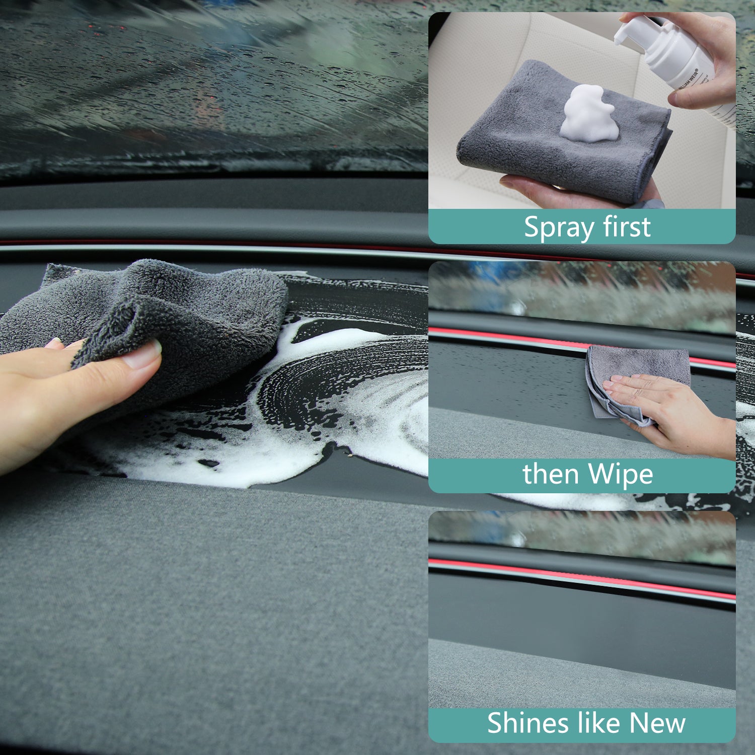 Facile à utiliser : Vaporisez directement le nettoyant mousse pour voiture sur la zone souhaitée. Après le nettoyage, essuyez la mousse avec une serviette, sans laisser de résidus.