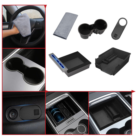 Topabyte Center Console USB Hub con vassoio organizzatore set per il modello 3 2021-2023 e il modello Y 2020-2024